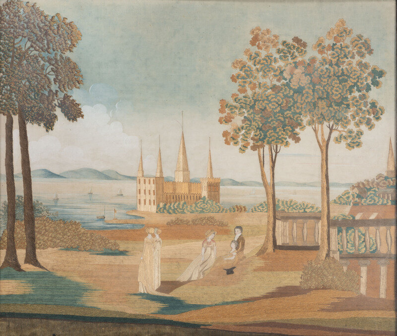 together with a needlework embroidered picture of Kronborg Castle, wrought by Elizabeth Leavitt