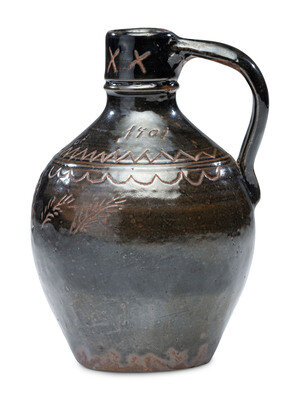 A Potter Ridge Albany Slip-Glazed and Incised Jug