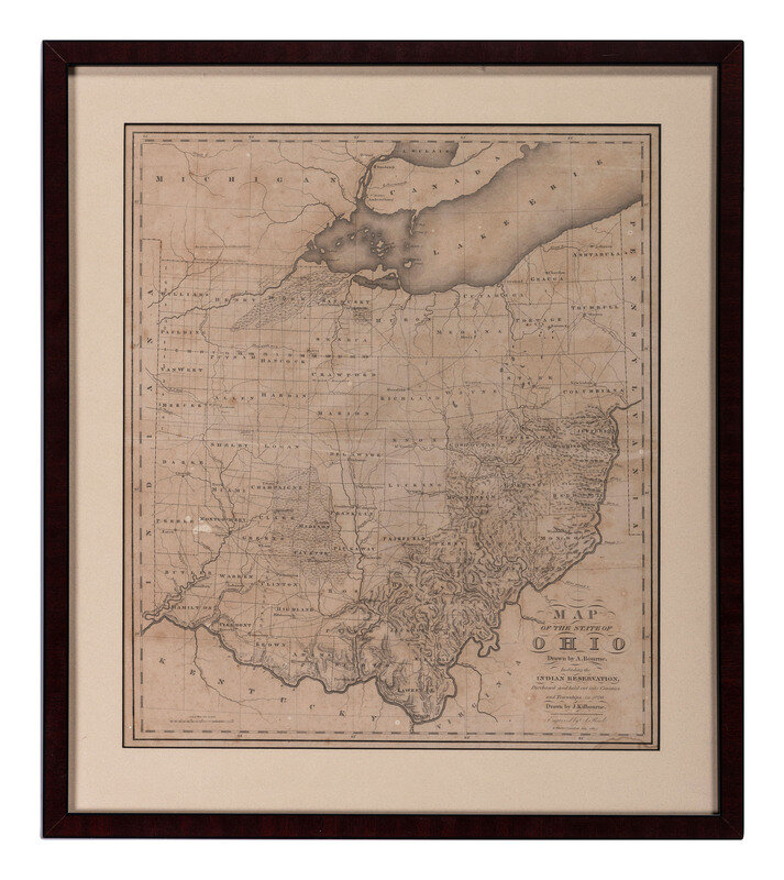 BOURNE, Alexander and KILBOURNE, John. Map of the State of Ohio Drawn by A. Bourne. Including the Indian Reservations, Purchased and laid out into Counties and Townships in 1820. Drawn by J. Kilbourne. Windsor, Connecticut, circa 1820.
