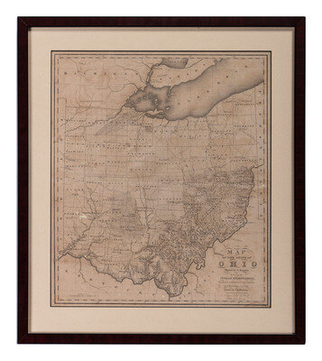 Engraved map of Ohio, visible area 19 1/4 x 16 3/4 inches.