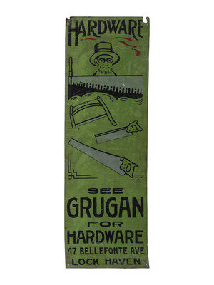 A 'See Grugan for Hardware' Painted Sheet Metal Advertising Sign