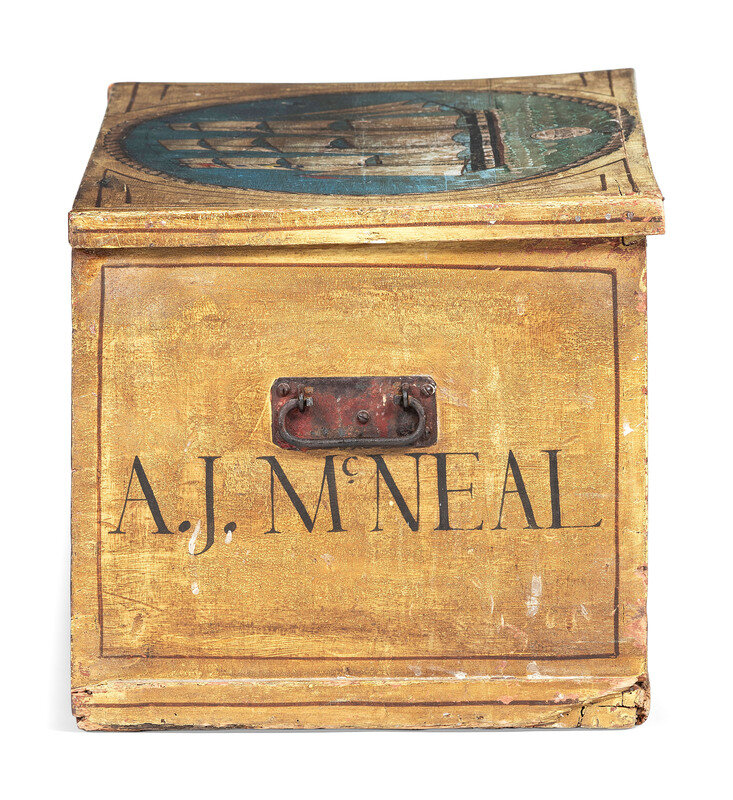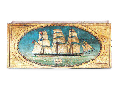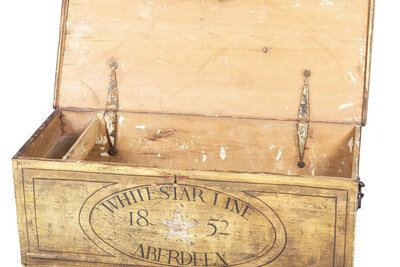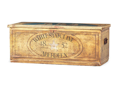 An English Paint Decorated Pine The Renown White-Star Line Blanket Chest
