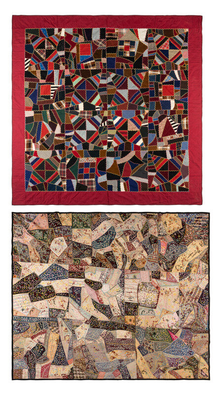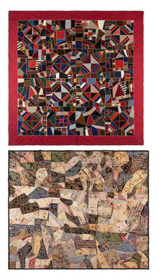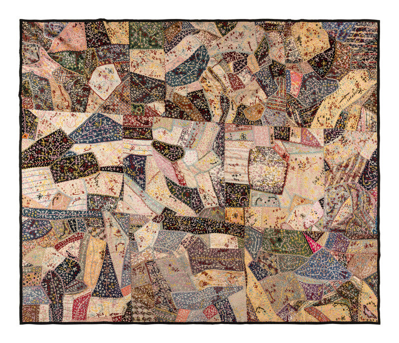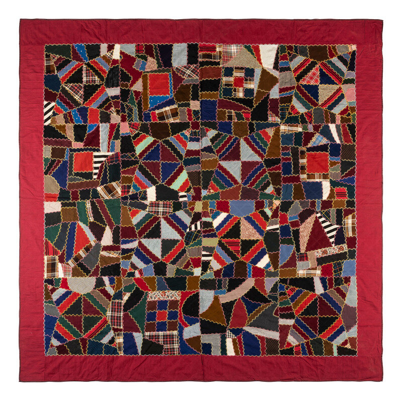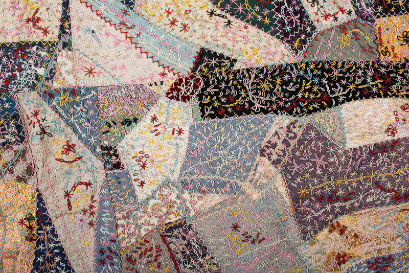 A Pieced and Embroidered Silk and Cotton Crazy Quilt