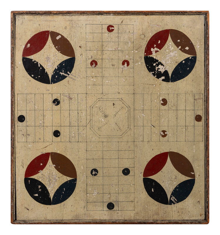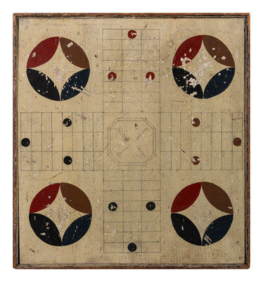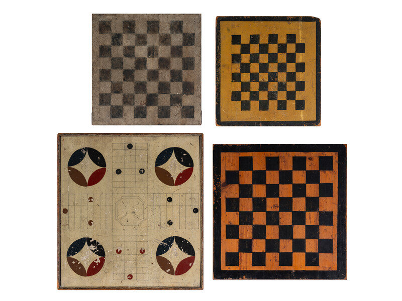 comprising three single-sided examples and one double-sided Parcheesi example.