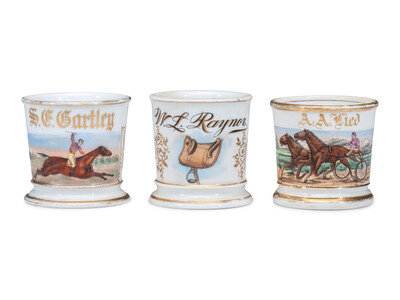 Three Jockey's Porcelain Occupational Shaving Mugs