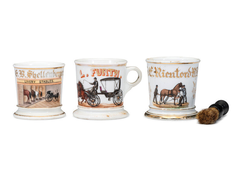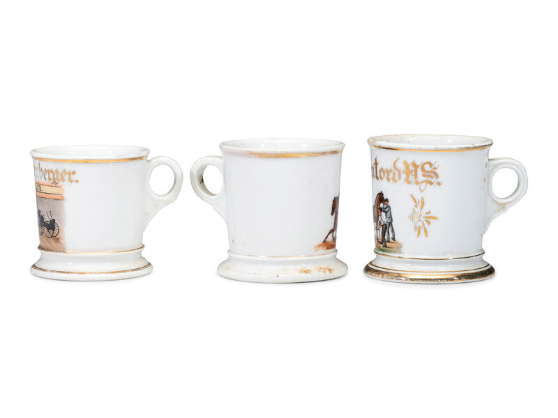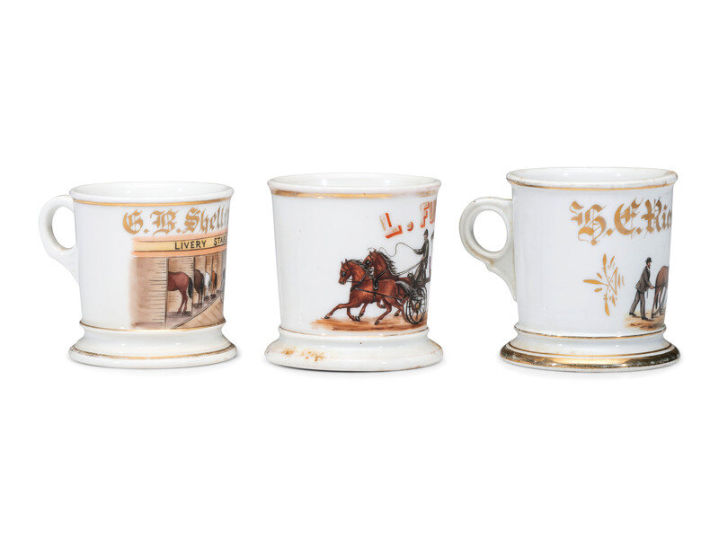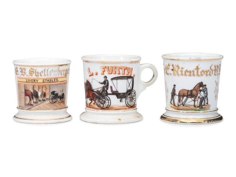 Three Equestrian Porcelain Occupational Shaving Mugs