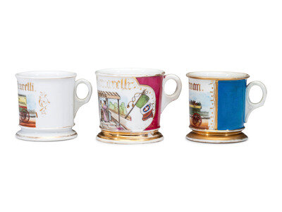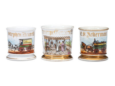 Three Grocer's Porcelain Occupational Shaving Mugs