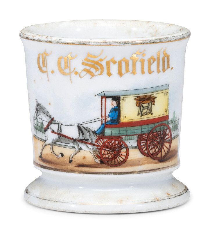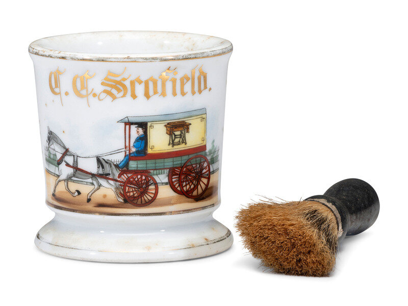 A Sewing Machine Salesman's Porcelain Occupational Shaving Mug