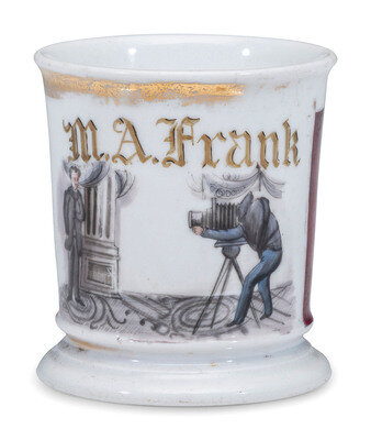 identified M.A. Frank in gilt lettering and depicting a gentleman posing for a photographer.