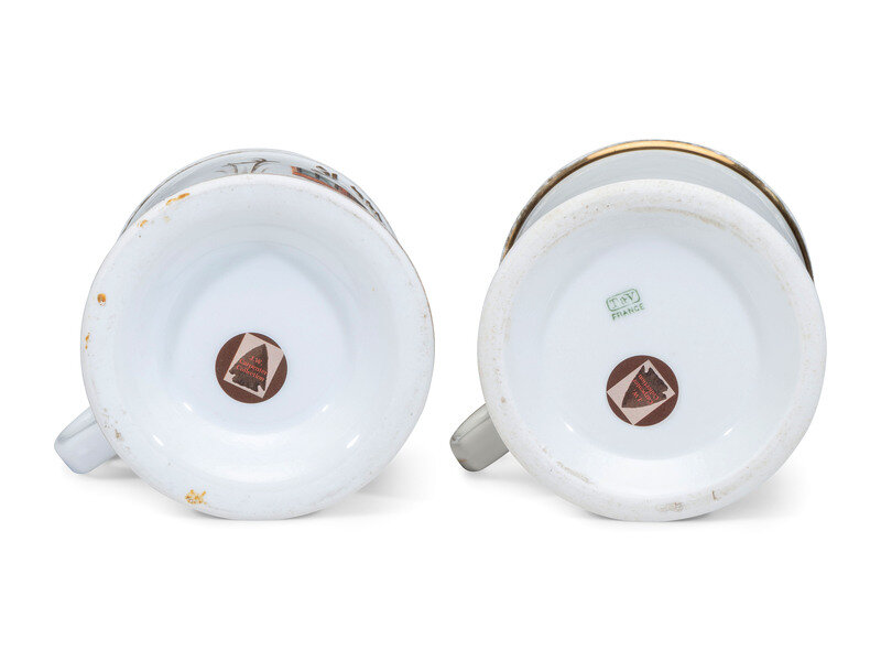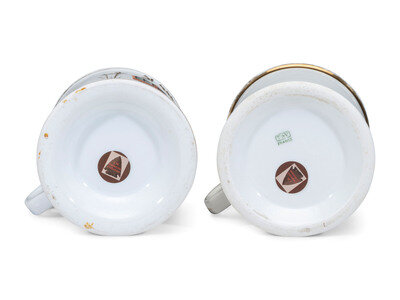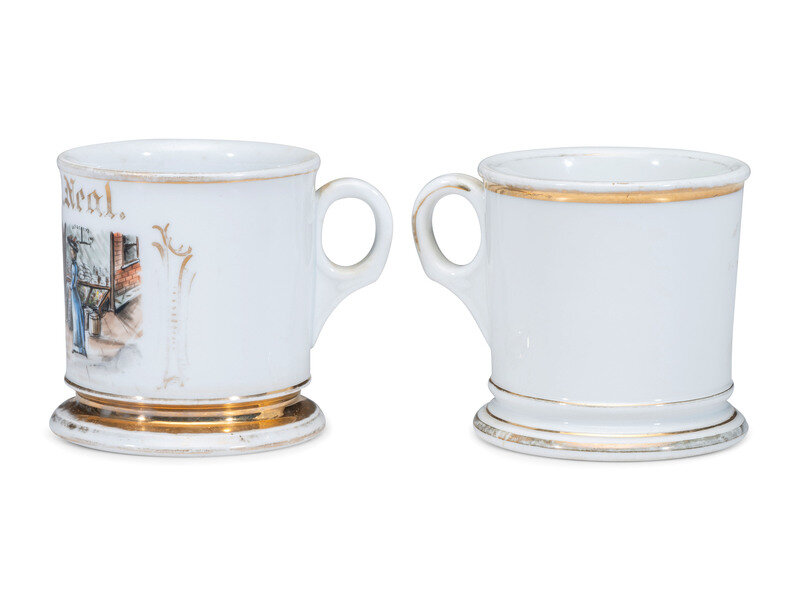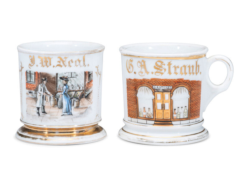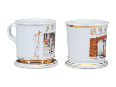Two Store Proprietor's Porcelain Occupational Shaving Mugs