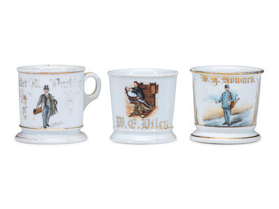 Three Porcelain Occupational Shaving Mugs