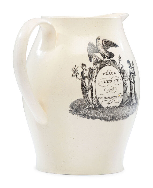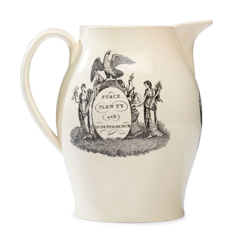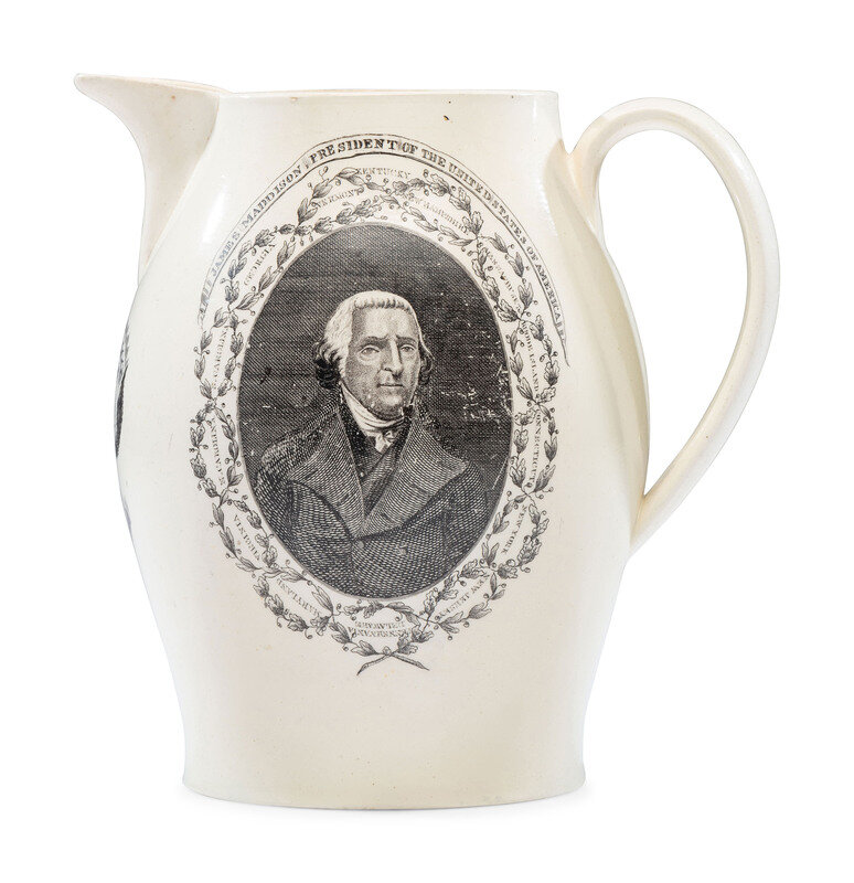 A Liverpool Transfer-Printed Creamware 'Peace, Plenty, and Independence / James Madison' Pitcher