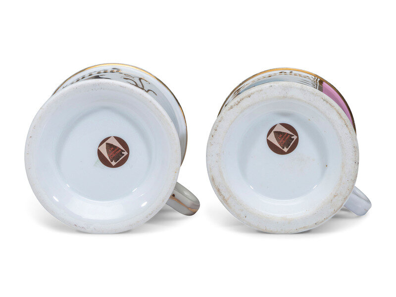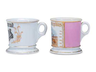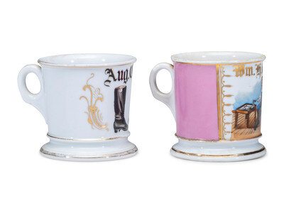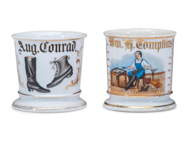 Two Cobbler's Porcelain Occupational Shaving Mugs