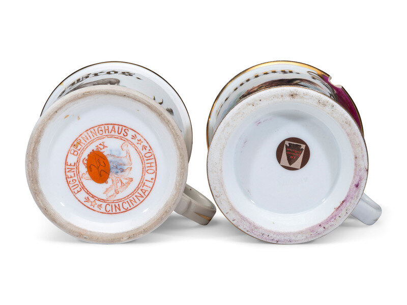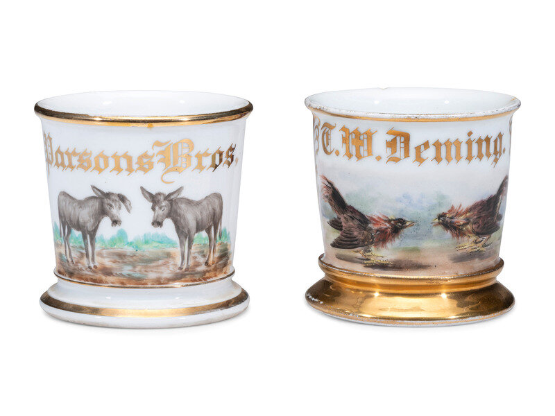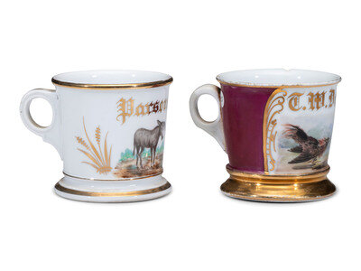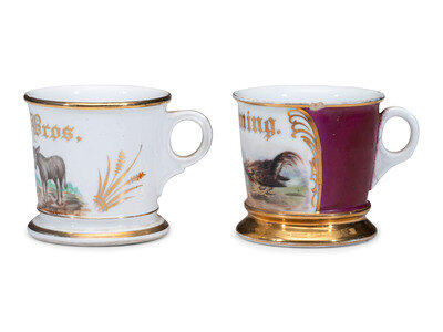 Two Porcelain Shaving Mugs of Farm Animal Interest