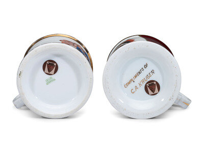 comprising a presentation mug identified Wm. Verbeck, the President of St. John's Military Academy in 1896, with inscribed dedication Compliments of C.A. Kruger to underside, and a veteran's mug identified M. Hartman and stamped VxD Austria to underside.