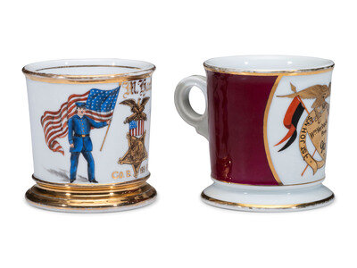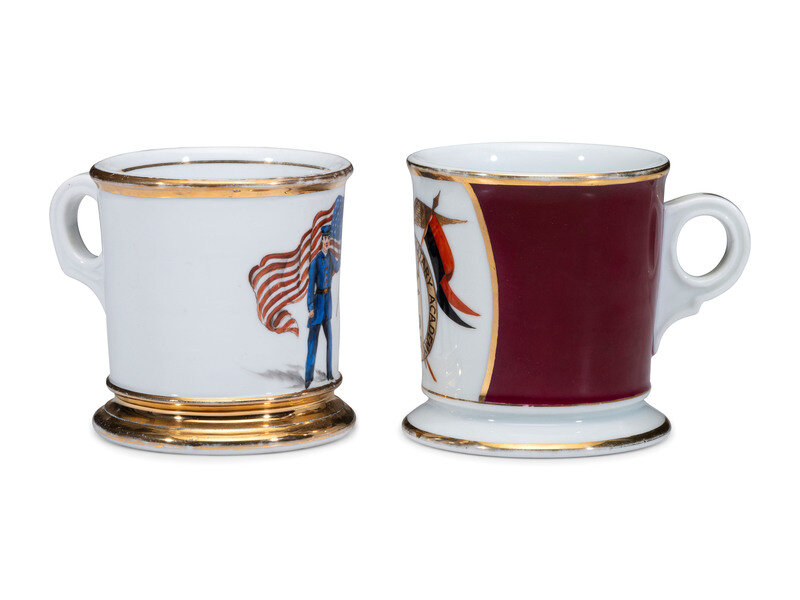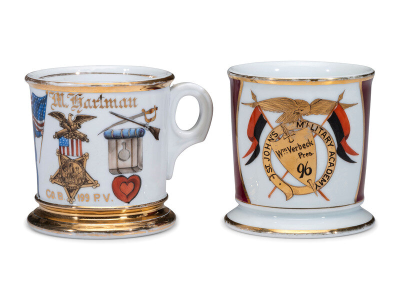 Two Military Related Porcelain Shaving Mugs, One Belonging to William Verbeck