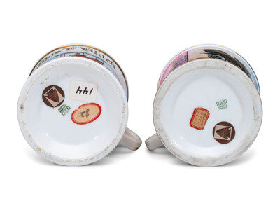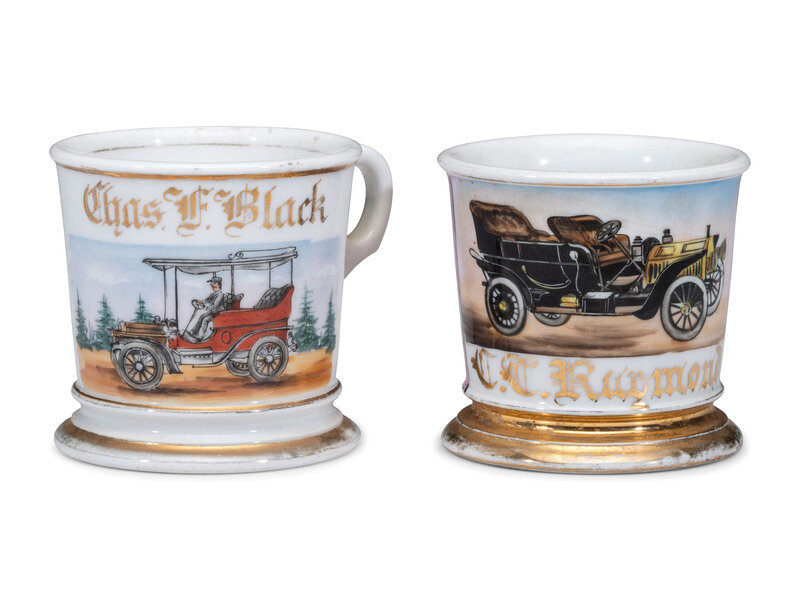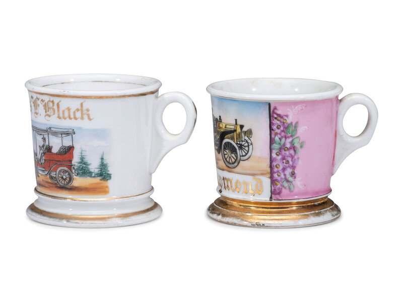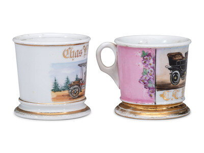 Two Open Touring Car Porcelain Occupational Shaving Mugs