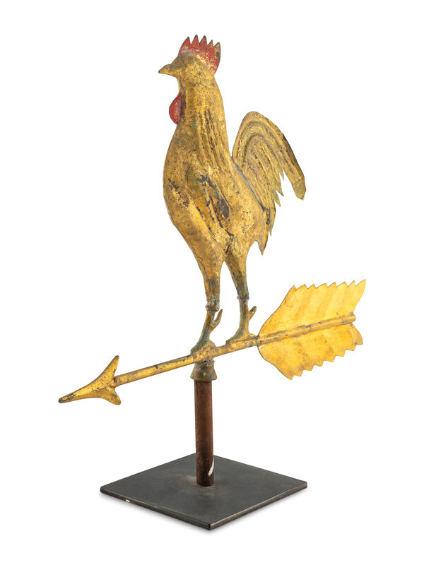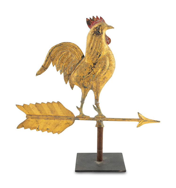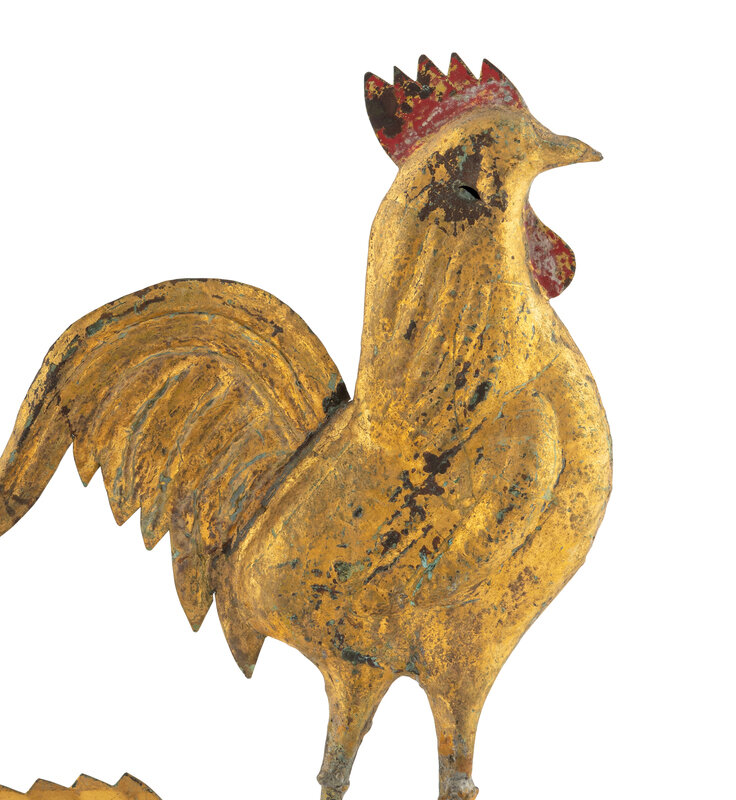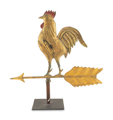 A Gilt and Red Painted Molded Copper Rooster Weathervane