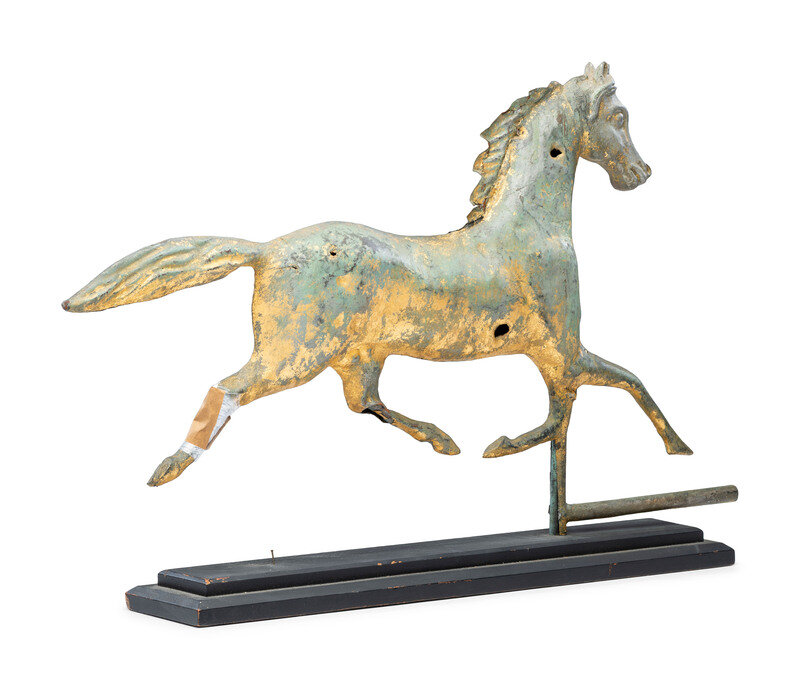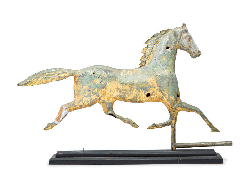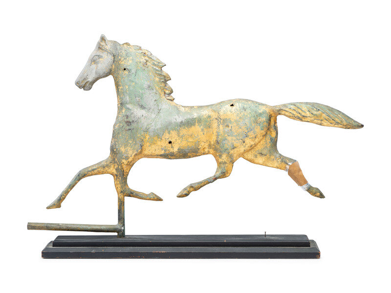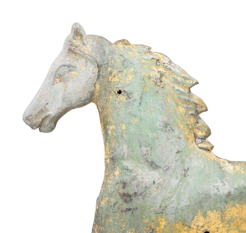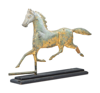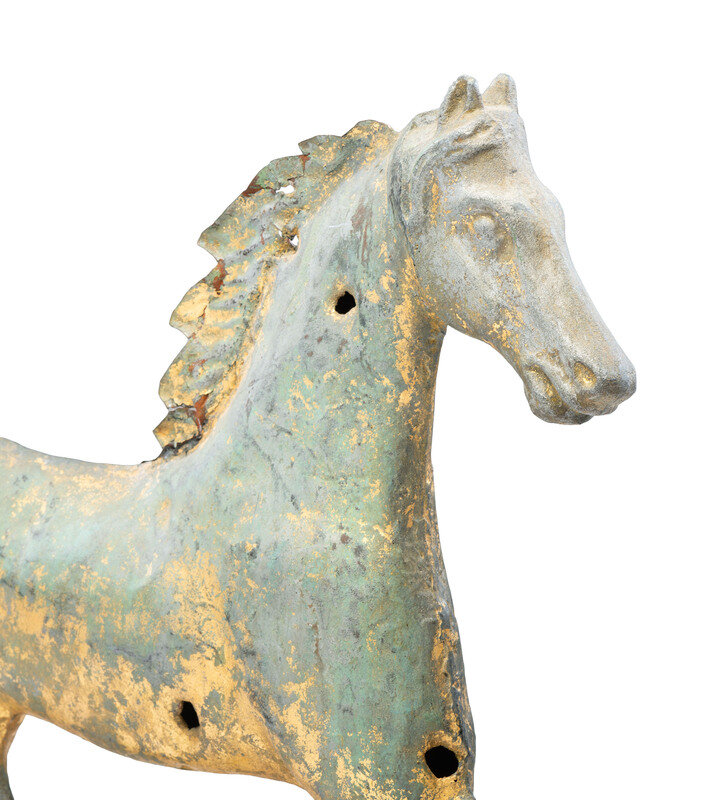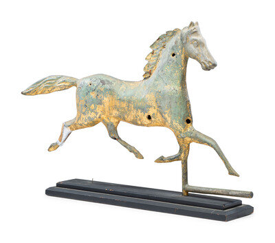 A Cast Zinc and Parcel Gilt Molded Copper Trotting Horse Weathervane