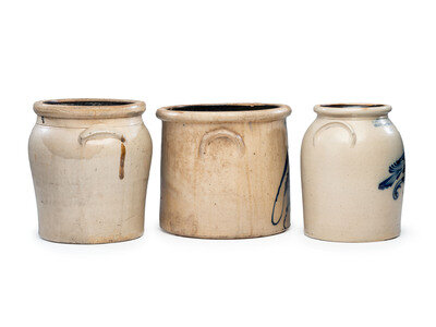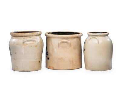 Three Cobalt-Decorated Stoneware Vessels