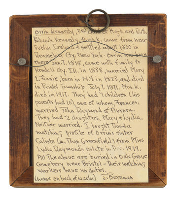 notes on verso identify the female sitter as Calista Kennedy, Rensselaer County, NY.