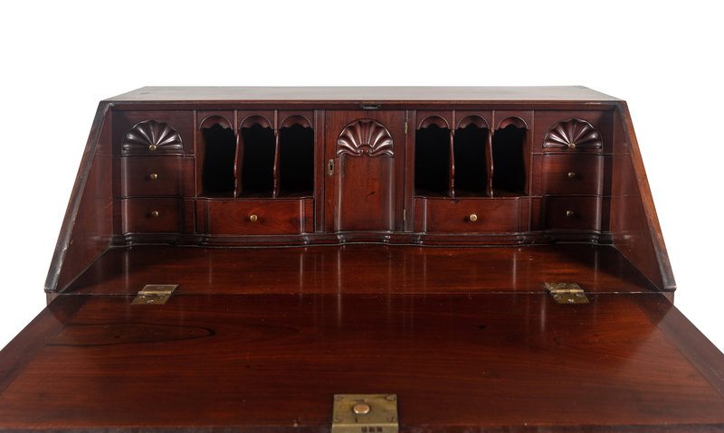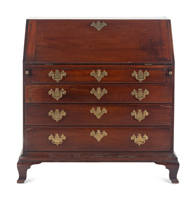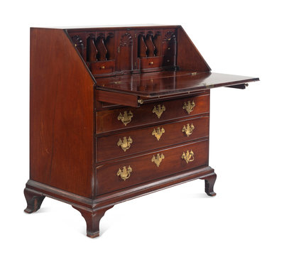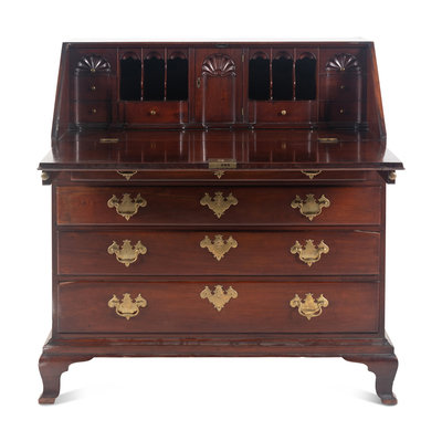 A Chippendale Shell-Carved Mahogany Slant-Front Desk