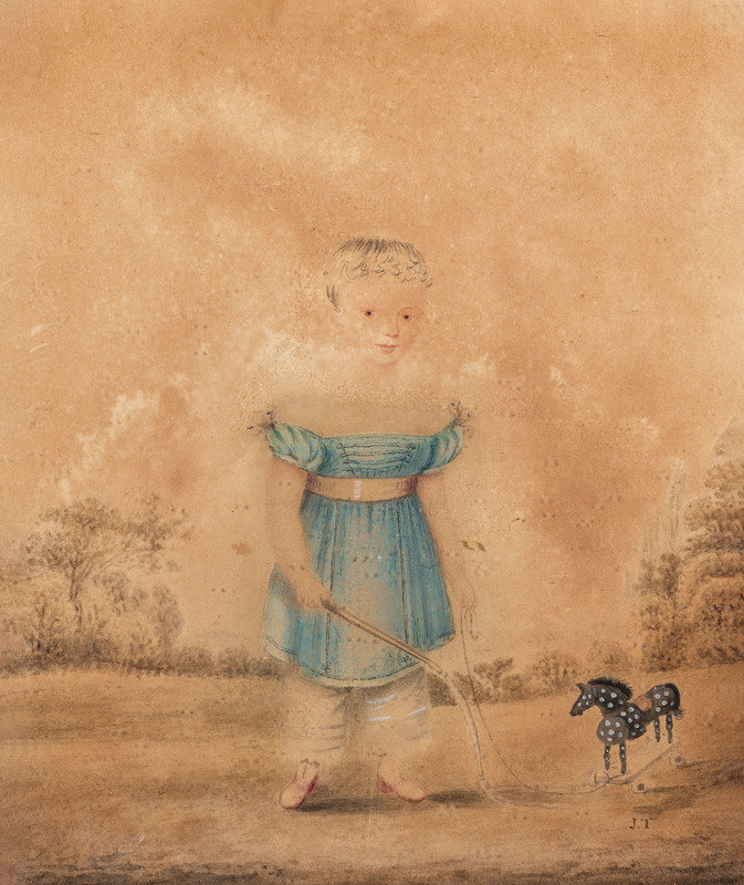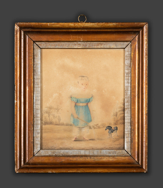 Miniature Portrait of a Child with a Horse Pull Toy