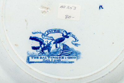 comprising Wood & Sons 'Southampton Hampshire' and Baltimore & Ohio Railroad plates, two Clews 'Peace & Plenty' plates, and a 'Grand Erie Canal' plate.