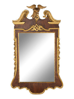 A Chippendale Walnut Veneered and Parcel Gilt Looking Glass