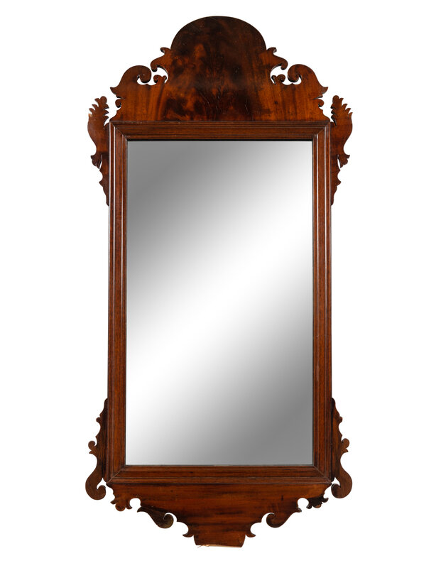 A Chippendale Carved and Figured Walnut Looking Glass