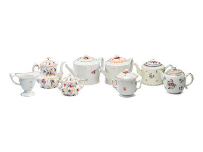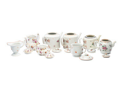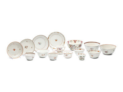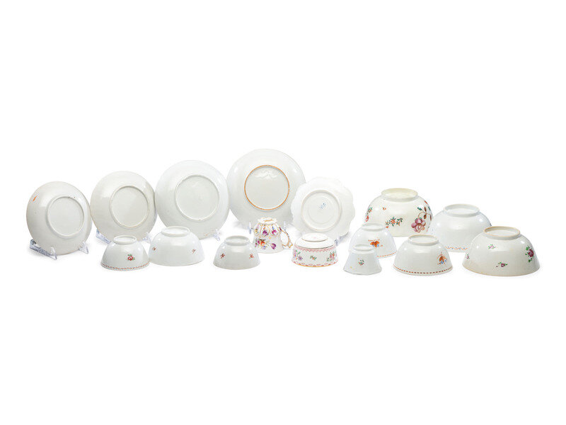 A Mixed Collection of Chinese Export Famille Rose and Rose Mandarin Porcelain Articles