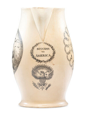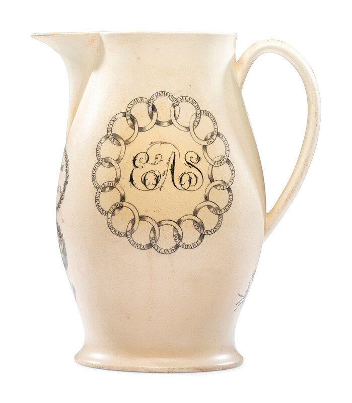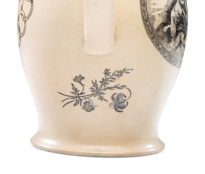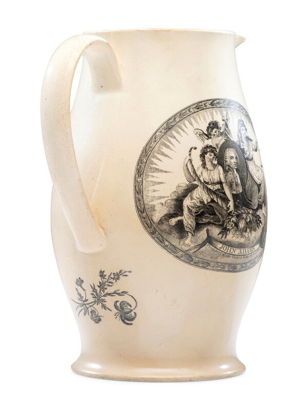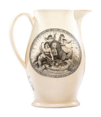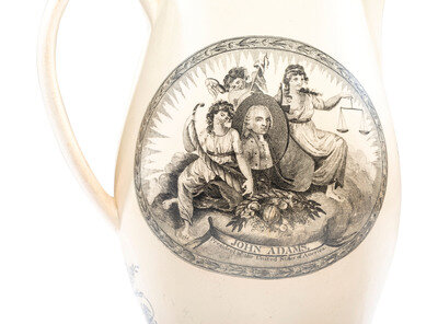 A Rare Liverpool Transfer-Printed Creamware 'John Adams' Pitcher