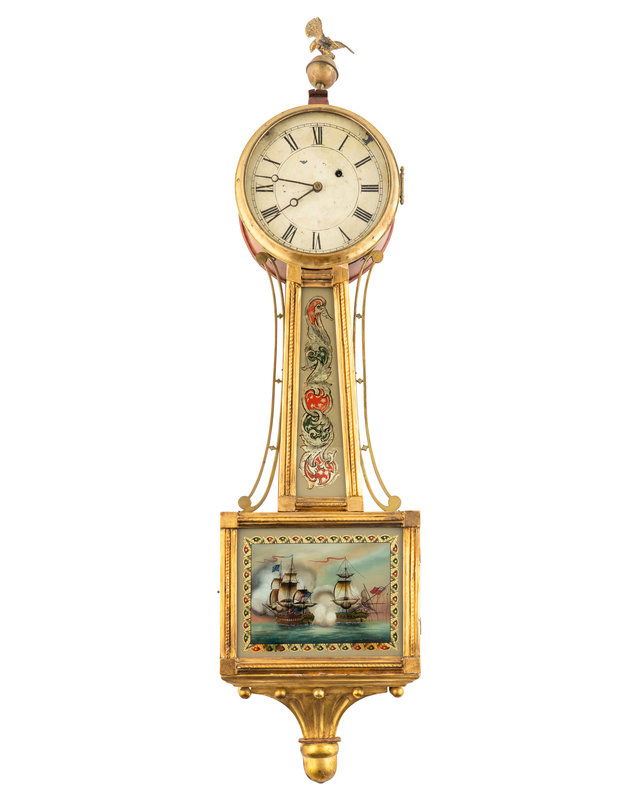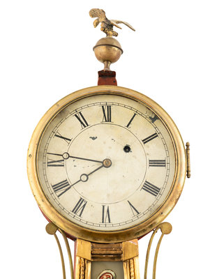 An Federal Parcel-Gilt and Eglomise Decorated Banjo Clock