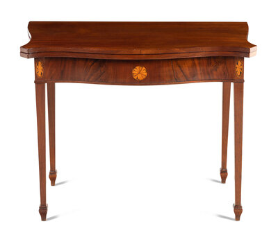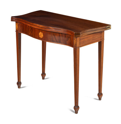 A Late Federal Inlaid Mahogany Serpentine Flip-Top Game Table