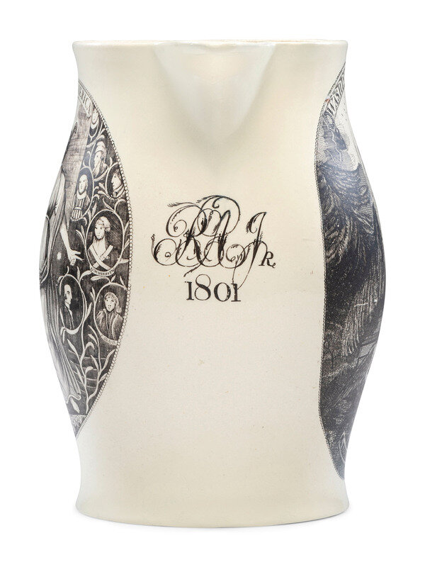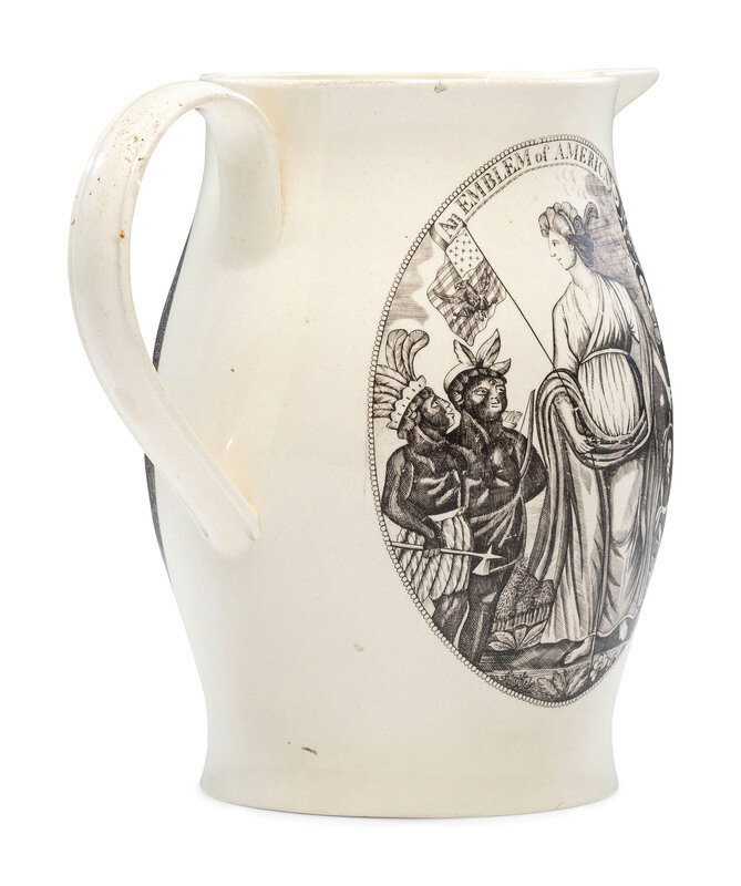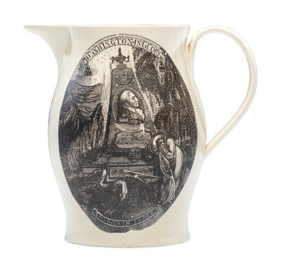 A Liverpool Transfer-Printed Creamware 'Emblem of America / Washington in Glory' Pitcher