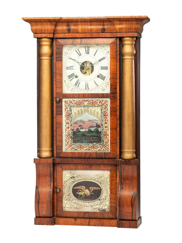 An American Eglomise Rosewood Mantel Clock