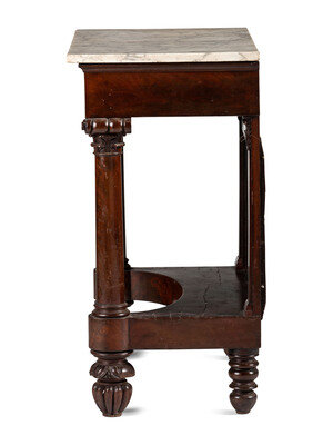 A Classical Carved and Veneered Walnut Marble Top Pier Table