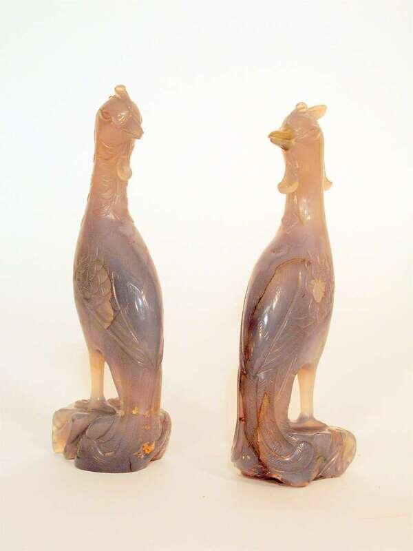 Carved form a single section, side profile over rock-work base, brown inclusion.