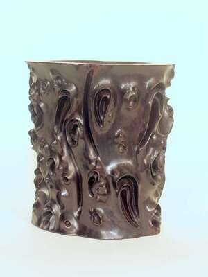 Of cylindrical form, reticulated and enhanced to show trunk-like inclusions.