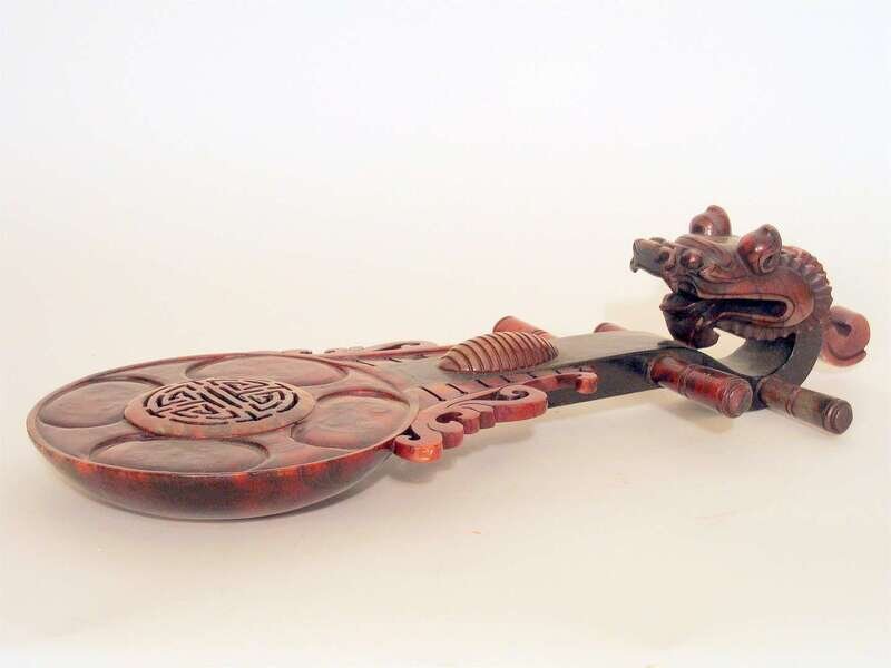 Of flat form, oval base worked to show Shou symbol, dragon head plank.