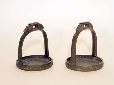Pair of Chinese bronze stirrups ming dynasty mark, ming/qing dynasty