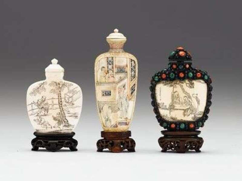 Three Chinese elephant ivory snuff bottles early 20th century