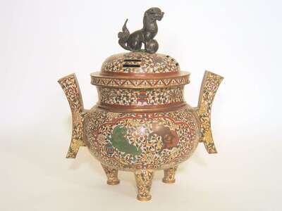 Large Chinese cloisonne censer ming four character mark, late qing dynasty