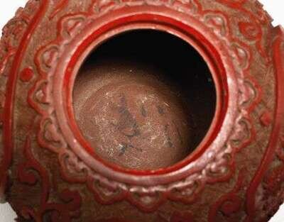 Very rare Chinese cinnabar lacquered yixing teapot qianlong period