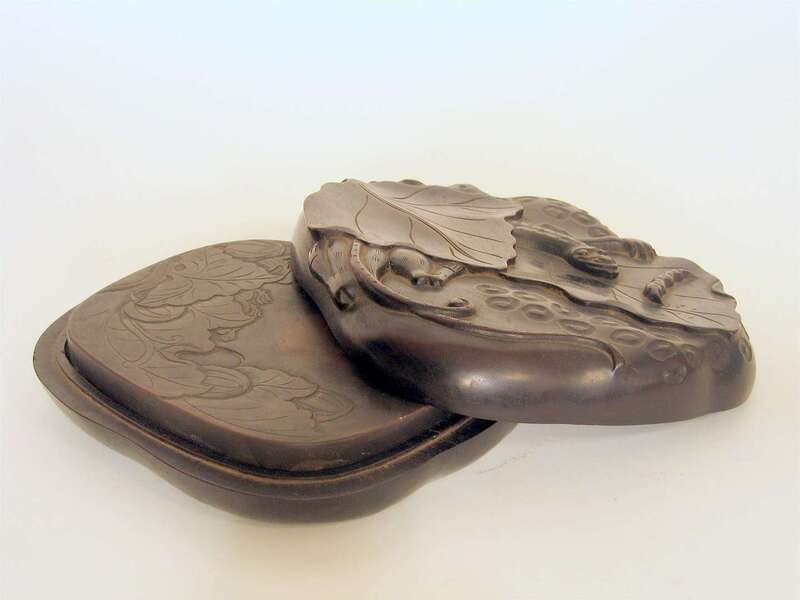 Chinese duan inkstone hardwood cover and base late qing dynasty