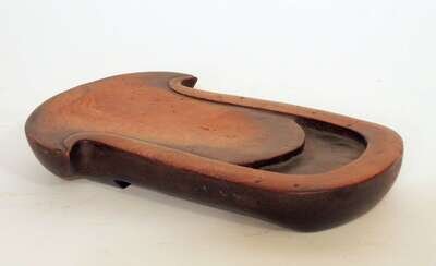 Of near lingzhi form, arch form wrist rest leading to narrow trough, marble figured tone, over bracket feet.