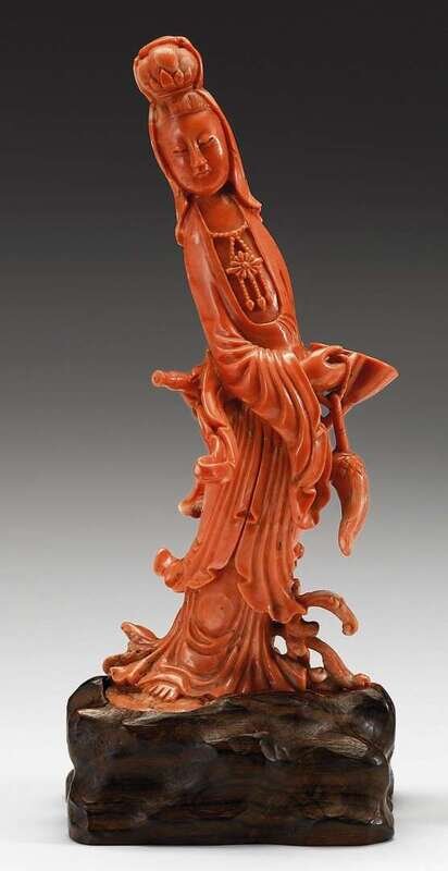 Large Chinese coral carved Quanyin figure 18/19th century