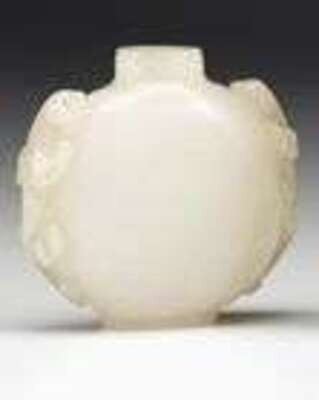 Of flattened ovoid form, carved to show two qilong to the shoulders, short neck and raised oval foot.