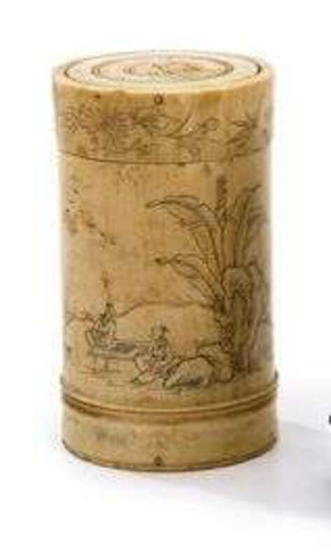 Chinese elephant ivory covered cylindrical box red artemisia leaf and possible kangxi period