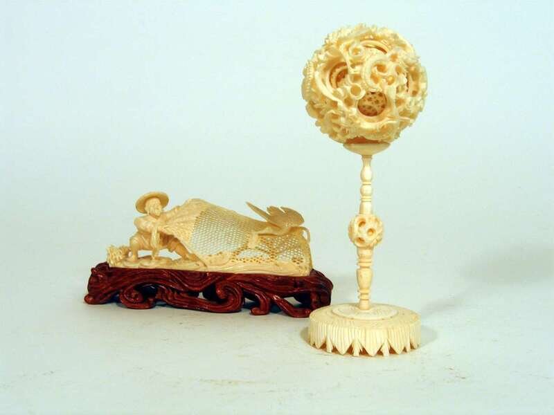 Chinese elephant ivory model and games ball on stand